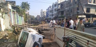 ଭାରସାମ୍ୟ ହରାଇ ବିଏମସି ର ଗାଡି ଦୁର୍ଘଟଣା ଗ୍ରସ୍ତ ।