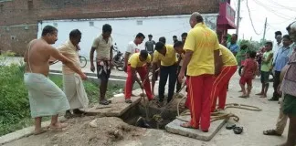 ଅସମ୍ପୂର୍ଣ୍ଣ ରାସ୍ତାର ବିରାଟ ଗାତରେ ପସିଗଲା ଷଣ୍ଢ, ଅଗ୍ନିଶମ ବିଭାଗ ଦ୍ଵାରା ଉଦ୍ଧାର